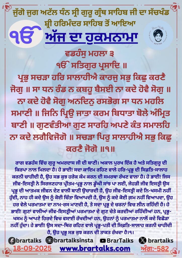 Amrit Vele Da Hukamnama Sri Darbar Sahib Amritsar