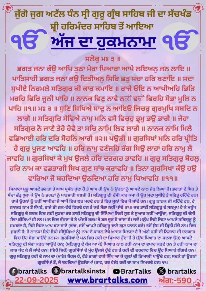 AMRITVELE DA HUKAMNAMA SRI DARBAR SAHIB, SRI AMRITSAR