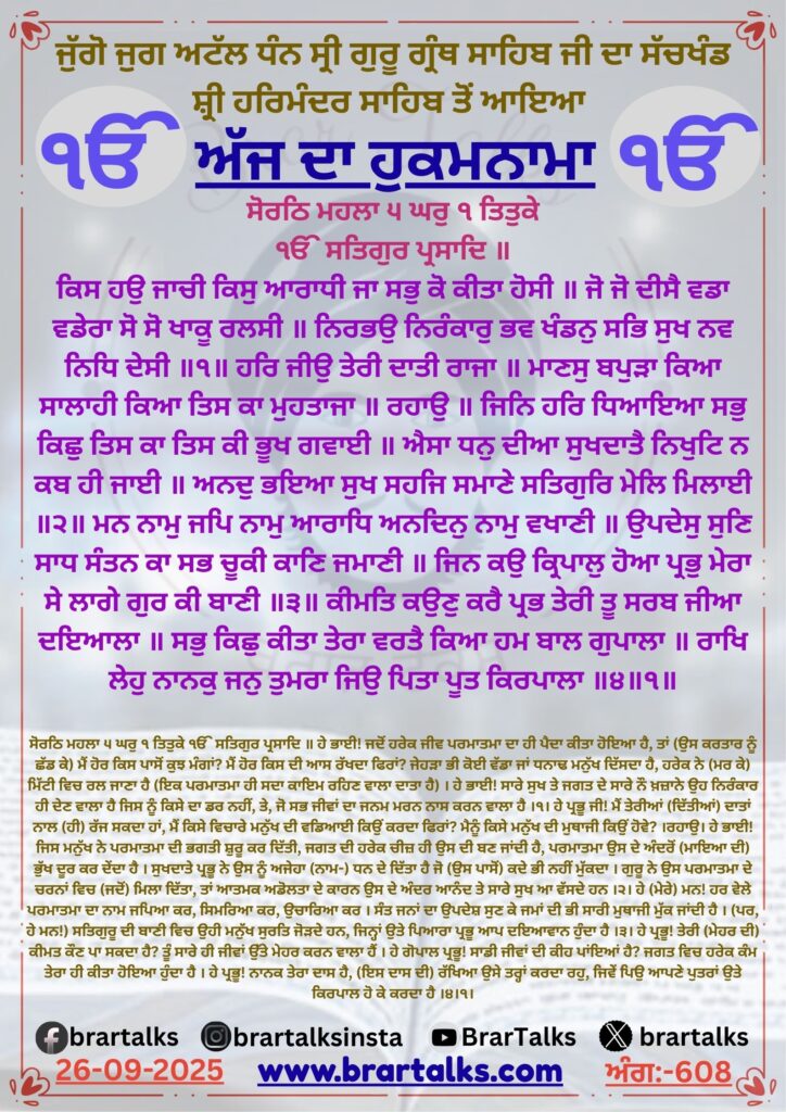 Amrit vele da Hukamnama Sri Darbar Sahib, Sri Amritsar