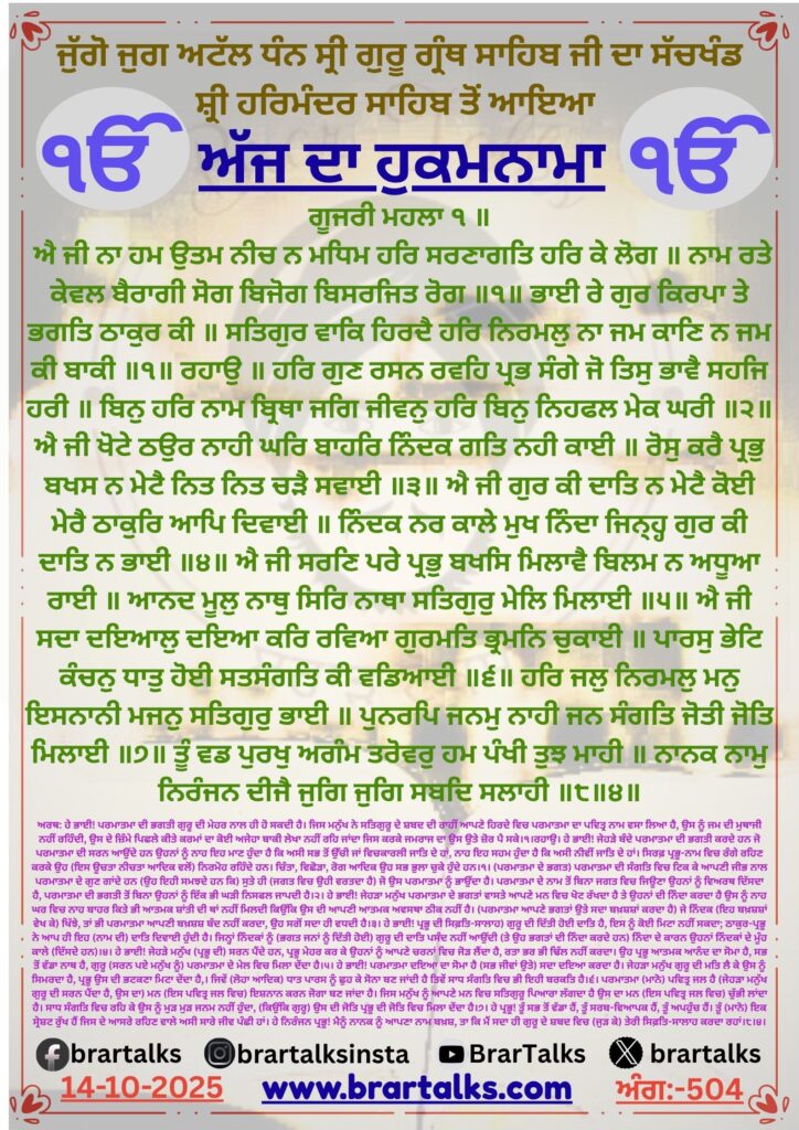 AMRIT VELE DA HUKAMNAMA SRI DARBAR SAHIB, SRI AMRITSAR