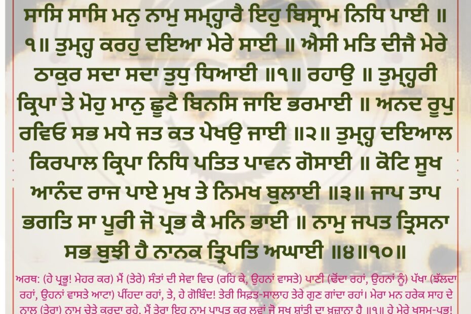 Amrit vele da Hukamnama Sri Darbar Sahib Amritsar Ang 673, 13-10-2025 ਧਨਾਸਰੀ ਮਹਲਾ ੫ ॥ ਪਾਨੀ ਪਖਾ ਪੀਸਉ ਸੰਤ ਆਗੈ ਗੁਣ ਗੋਵਿੰਦ ਜਸੁ ਗਾਈ ॥ ਸਾਸਿ ਸਾਸਿ ਮਨੁ ਨਾਮੁ ਸਮ੍ਹ੍ਹਾਰੈ… Read More »13 OCTOBER 2025| HUKAMNAMA | SACHKHAND SHRI HARMANDER SAHIB JI,Amritsar