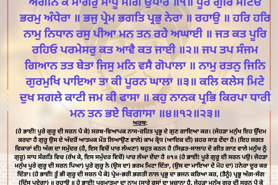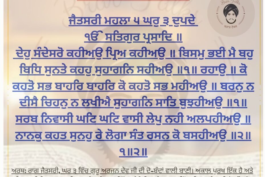 Amrit Wele Da Hukamnama Sachkhand Sri Harmandir Sahib  Amritsar Ang 615, 23-08-2025 ਸੋਰਠਿ ਮਹਲਾ ੫ ॥ ਗੁਣ ਗਾਵਹੁ ਪੂਰਨ ਅਬਿਨਾਸੀ ਕਾਮ ਕ੍ਰੋਧ ਬਿਖੁ ਜਾਰੇ ॥ ਮਹਾ ਬਿਖਮੁ ਅਗਨਿ ਕੋ ਸਾਗਰੁ ਸਾਧੂ… Read More »23 AUGUST 2025| HUKAMNAMA | SACHKHAND SHRI HARMANDER SAHIB JI,Amritsar